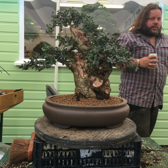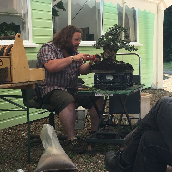 On the Bank holiday Monday we went see the folk at Greenwood Bonsai Studio and their special guest William N. Valavanis. In a special event to celebrate the nursery’s 40th anniversary Bill spent the weekend at Corin‘s performing demonstrations and holding workshops. On display in the studio was an exhibition of trees from Corin’s private collection, some unbelievable material! Corin also performed demonstrations over the weekend, photographed here with his olive from Monday’s demo. Many thanks to Corin, Paul, Petra and team for putting on the event & Bill for sharing his years of experience.