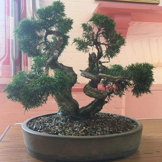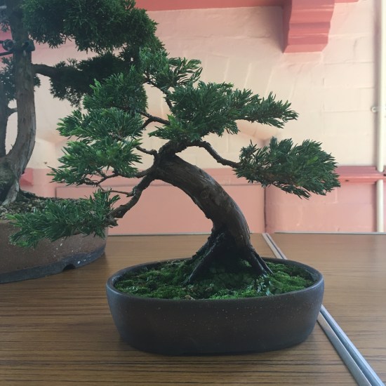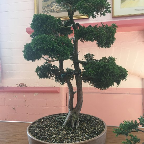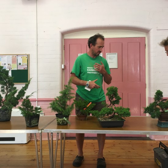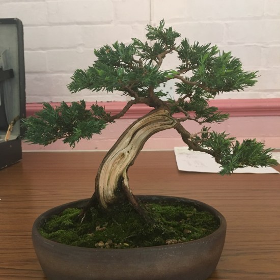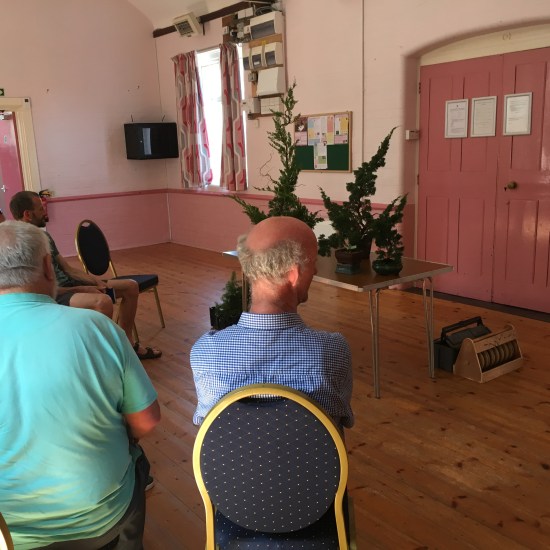 Our meeting for June brought a talk by Neil Hutchings of Devon Bonsai on the subject of Junipers and their cultivation as Bonsai. Neil took us through the various species of juniper commonly used here and and those classically cultivated in Japan, covering the strengths and drawbacks of each. Also covered were the grafting techniques used to capitalise on the strength of different species in the same piece of material. Other techniques Neil described were those used to cultivate the examples of junipers on display. These included growing from seed, taking cuttings, field growing, repotting, creation of deadwood and control of pests and disease. We were joined by new faces once again this month which is brilliant news. Any newcomers are more than welcome so please come and join us if interested. Many thanks to Neil for preparing the talk for us, anyone looking to get into Bonsai should visit his nursery (http://www.devonbonsai.co.uk), it’s a great place to start!