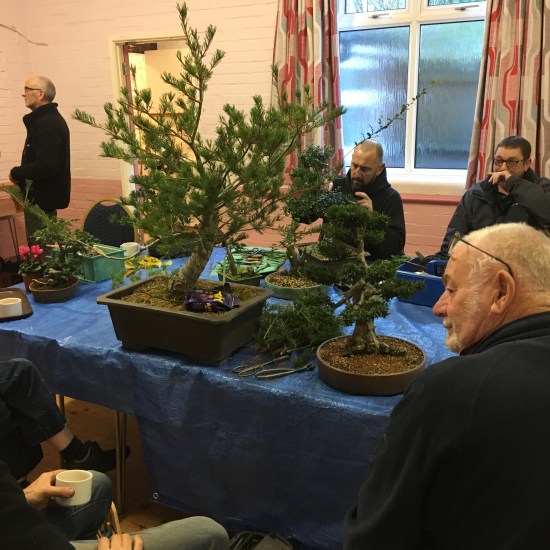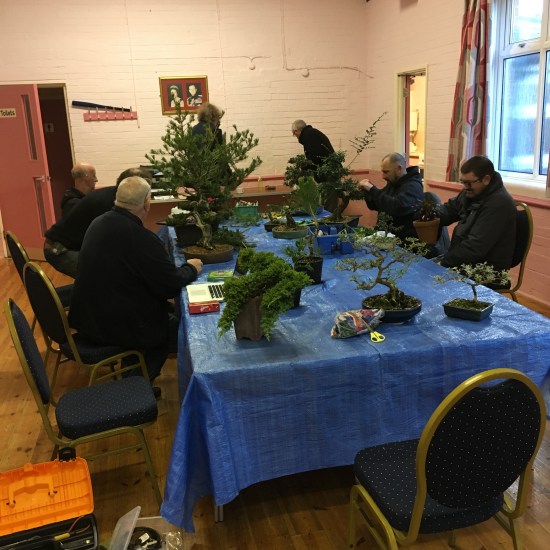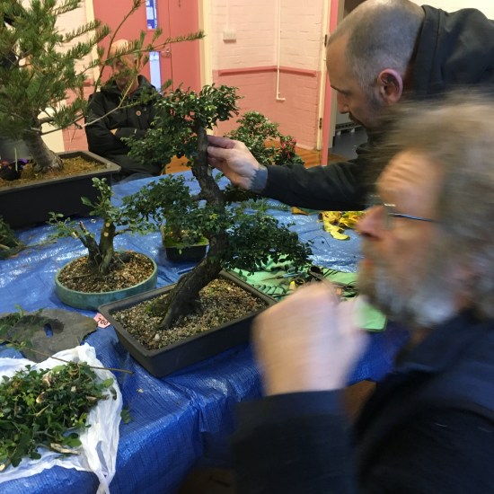A good workshop this month with our members all bringing trees to work on. Simons small privet ended up getting its trunk split with a little persuasion from Brian! Also John helped Andy style a procumbens juniper into a cascade (see next months post for a photo of the result). Not much in the way of photos this month but we made good use of the time to work on our trees.