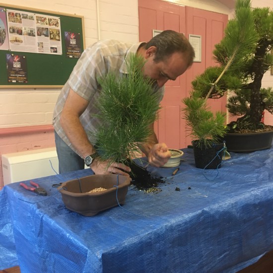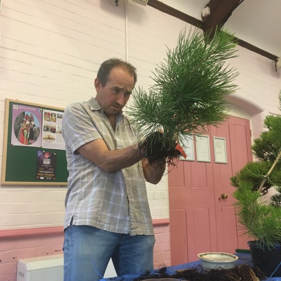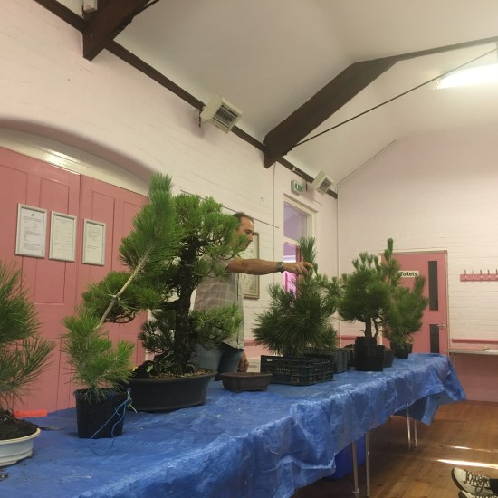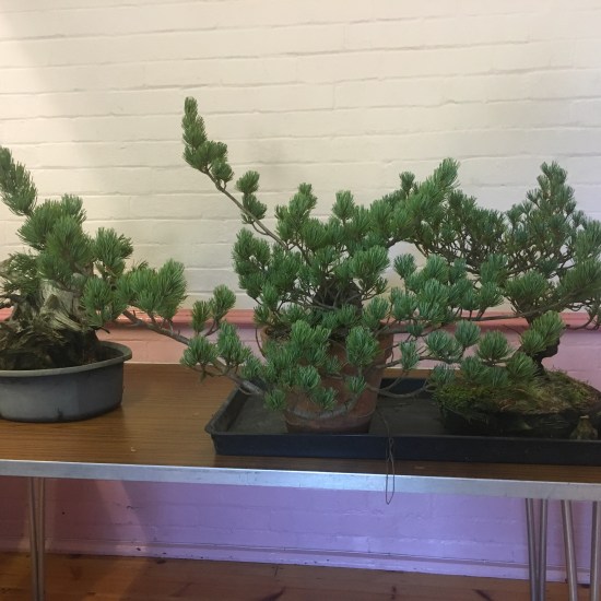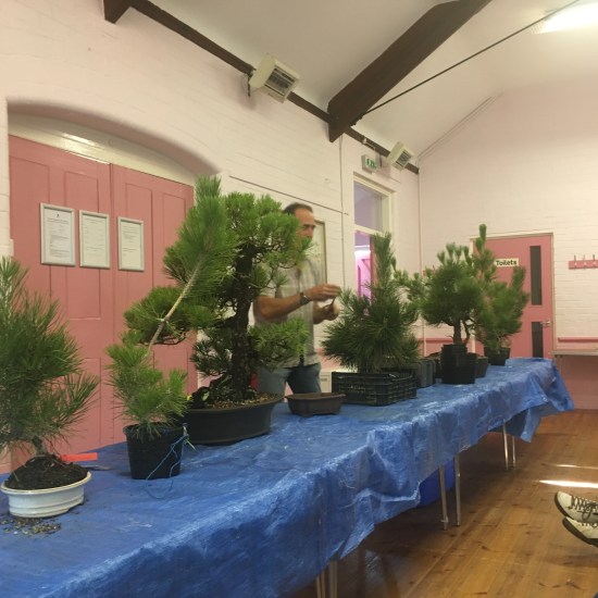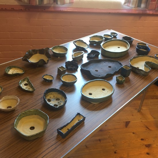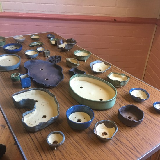 Japanese Black Pine is considered one of the classics of bonsai and is suitable for most styles. Neil brought with him various examples of these in bonsai cultivation and talked us through the techniques required for their care. From propagation through development of raw material onto refinement techniques and styling it was a great introduction to the species for those new to the species. Neil also demonstrated the repotting process for these pines to the group whilst fielding questions from the members. Thanks again to Neil for sharing his knowledge and time with us. Neil’s nursery, Devon Bonsai can be found here. Also featured this month were the results of or pottery workshop from the previous meeting, kindly fired and returned by Brian. All of the pieces survived firing, some could even be considered good, certainly for first attempts! The results can be seen in the photos.
