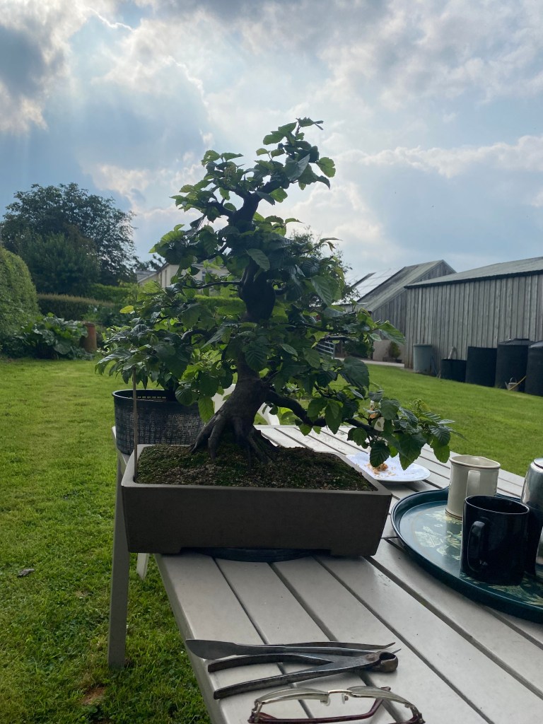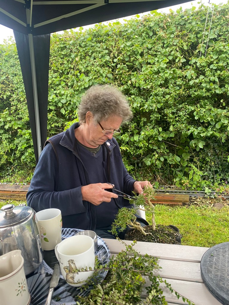 The summer sees the return of our in person meetings. We’ve met over at Devon Bonsai so that we can use the outside space and while they were only a few of us in attendance it was great to get back to meeting up and talking trees! Thanks to Neil for hosting us and keeping us in tea!