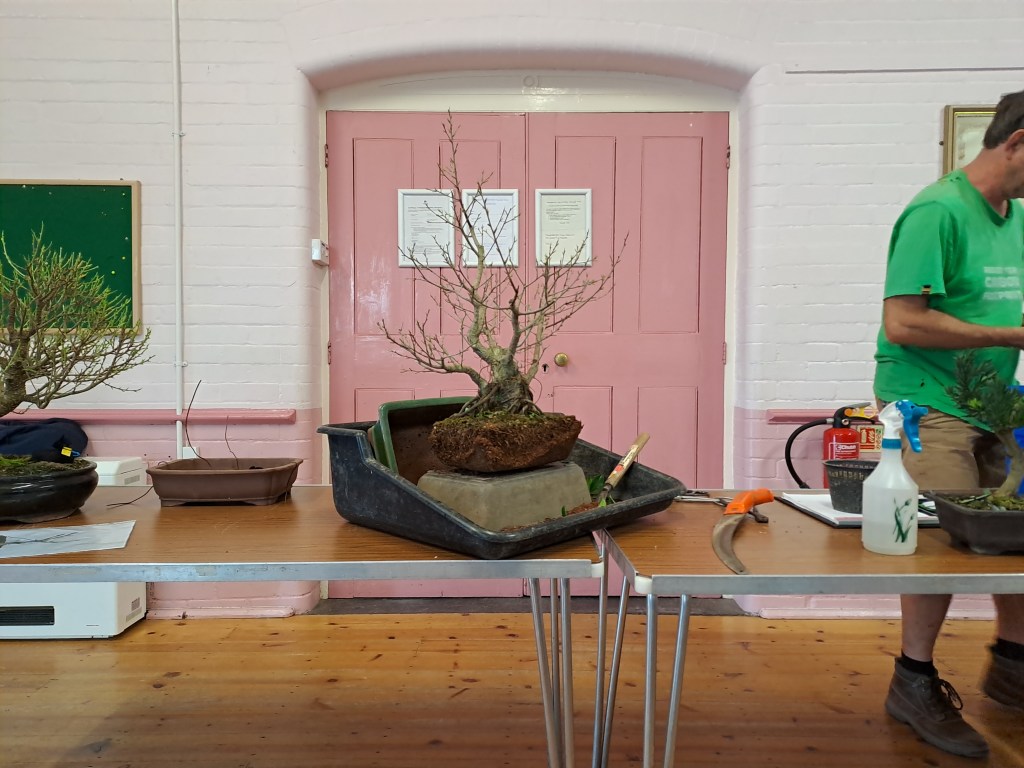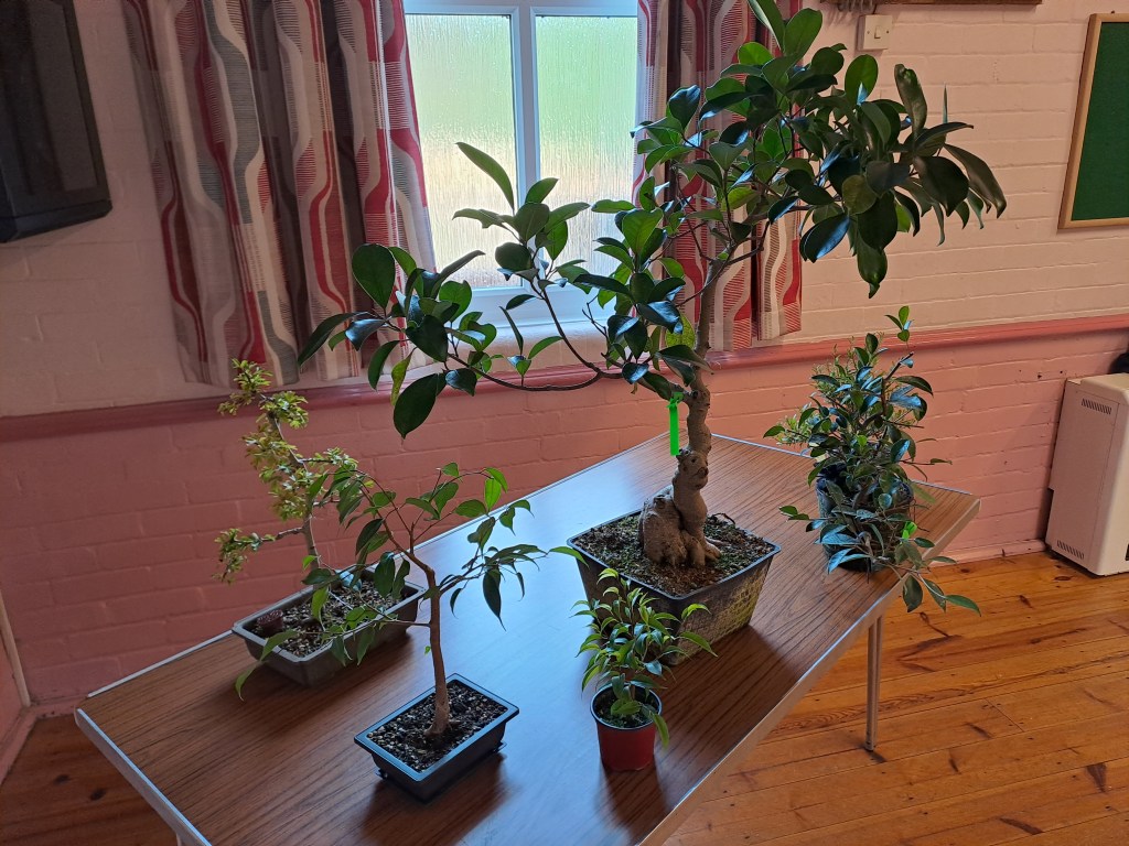 September’s meeting saw a good turn out of members, including a potential new one. Neil gave a talk on tropical and sub-tropical bonsai. The care and maintenance of a number of species was discussed including Ficus, Podocarpus and Syzygium. It was interesting to find out that a mid summer re-potting is recommended for Ficus instead of the usual early Spring time. Neil also demonstrated the pruning and re-potting of two Ficus Benjamina trees. The Ficus is a fast growing and strong species. Neil told us the story of a Ficus that he was given with no soil and a single green bud that had gone from an almost dead tree to making a full recovery (Photographic evidence provided!). The Podocarpus he brought along had developed some fruit, tasting similar to a plum, which some members tried. Just don’t confuse the fruit for the toxic seeds! Many thanks to Neil for the talk which is sure to inspire some members to give tropical bonsai a try.