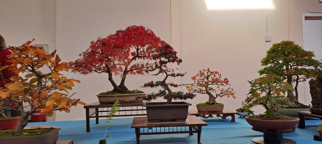We held our autumn club show in October, with many of our members bringing in trees and accent plantings. There was a very diverse selection of tree species. Some were in fabulous autumnal colour whilst others were resplendent in colourful fruit. It was really interesting to hear the details of the development of many of these bonsai over so many years. Ideas and possibilities for the future development of some of these bonsai were also discussed. Thanks to Brian and Neil for all of their advice and to all the members who brought in trees.
