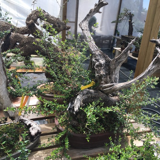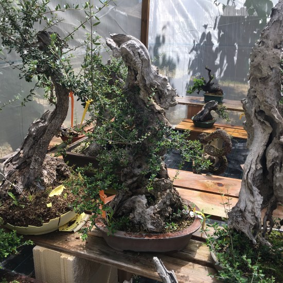 One of our members, Andy, visited Mallorca recently and whilst there paid a visit to Bonsai sense near Palma, the nursery of Rafael Torres and Deyssa Sánchez. It was well worth the plane, bus and taxi needed to get there! There were trees for sale from starter trees to specimen trees of various species, but the species of note has to be the olives. The mountains of Mallorca seem to be the perfect place for olives with twisted, gnarled trunks and great, fissured bark. This makes, along with excellent care and cultivation, bonsai of excellent potential and quality and many of these can be found at Bonsai Sense. As such the temptation was too much and one of these olives is now headed over to England and Andy’s garden! Many thanks go to Deyssa who on the day was very welcoming and helpful. The nursery is well worth a visit should you be on the island at any point. Check their website (spanish language) here https://www.bonsaisense.com